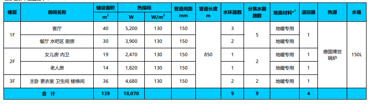 家居集成系統:特靈中央空調系統 博世歐洲之星鍋爐 嘉科米尼地暖管路系統 濱特爾中央水處理 威樂循環泵