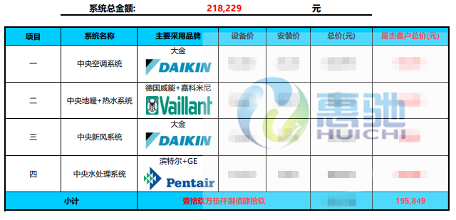 家居集成系統(tǒng): 大金VRVP系列中央空調(diào) 布朗中央新風(fēng)系統(tǒng) 德國威能中央水地暖 濱特爾中央凈水