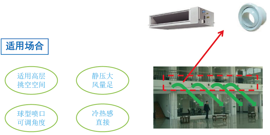 自由靜壓風(fēng)管機設(shè)備+球型噴口的空調(diào)方案。
