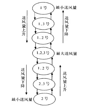 中央空調(diào)節(jié)能改造系統(tǒng)要考慮風(fēng)機(jī)的運行控制方式,即應(yīng)使每臺風(fēng)機(jī)的運行時間盡量均衡。另外,控制器應(yīng)簡單有效,設(shè)計時能考慮各種特殊情況,具有一定的抗干擾及應(yīng)變能力。