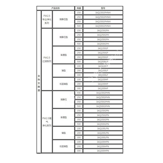 全熱交換器各系列和型號