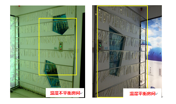 為了更好地檢測(cè)中央空調(diào)的出風(fēng)和氣流,在正對(duì)空調(diào)出風(fēng)口的對(duì)面拜訪了一個(gè)流蘇架,這樣就能很清楚地看出空調(diào)的風(fēng)向和風(fēng)速了。