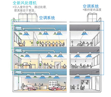 針對國內霧霾天氣頻發,大金全新風VRV機組可選配"亞高效"級新風過濾配件,將室外空氣中PM2.5與二氧化琉、二氧化氮等有害物質過濾后再引入室內,向用戶提供一個綠色生態室內環境。